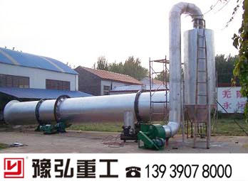 在物料干燥的过程中:湿物料由皮带输送机或斗式提升机送到料斗,然后经料斗的加料机通过加料管道进入加料端。加料管道的斜度要大于物料的自然倾角,以便物料顺利流入干燥器内。滚筒烘干机圆筒是一个与水平线略成倾斜的旋转圆筒。物料从较高一端加入,载热体由低端进入,与物料成逆流接触,也有载热体和物料一起并流进入筒体的。随着圆筒的转动物料受重力作用运行到较底的一端。湿物料在筒体内向前移动过程中,直接或间接得到了载热体的给热,使湿物料得以干燥,然后在出料端经皮带机或螺旋输送机送出。在筒体内壁上装有抄板,它的作用是把物料抄起来又撒下,使物料与气流的接触表面增大,以提高干燥速率并促进物料前进。载热体一般分为热空气、烟道气等。载热体经回转转筒烘干机以后,一般需要旋风除尘器将气体内所带物料捕集下来。如需进一步减少尾气含尘量,还应经过袋式除尘器或湿法除尘器后再放排放。
